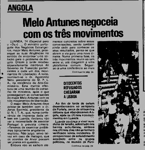 do Norte. Notícia do Diário de Lisboa de há 39 anos, sobre a visita de Melo Antunes a Luanda