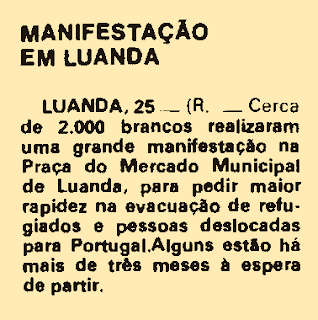 | Notícia do Diário de Lisboa sobre a manifestação de 2000 brancos em Luanda, a 24 de Agosto de 1975 |